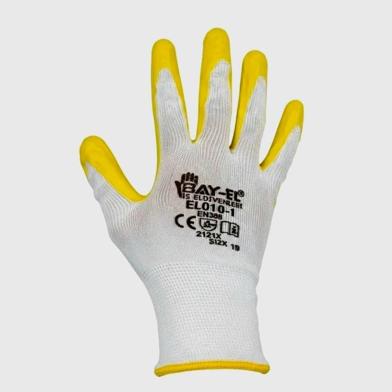 دستکش نخی با روکش نیتریل بافته شده از پارچه کشبافت پلی_استر سایز large پوشش کشبافت بدون درز و فشرده دارای پوشش لاتکس سبک و مقاوم نرم، انعطاف پذیر، راحتی دست حین کار و عدم احساس خستگی طراحی شده برای کار در فضاهای باز در زمستان دارای مقاومت بالا و ویژگی ضد لغزش بودن دستکش در دست مناسب برای ساخت و ساز ، انبارداری ، صنعت فلزات و شیشه ای ، مونتاژ خودرو ، جابجایی وسایل تیز و برنده ، جابجایی شیشه