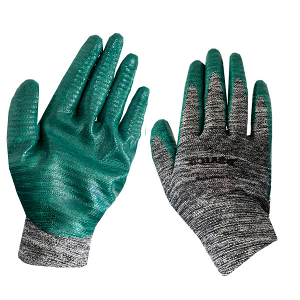 دستکش ایمنی کف نیتریل پی کد GN-0369 ، این دستکش بافته شده از الیاف پلی استر با تراکم بافت 13 g و دارای روکش کف مواد از جنس نیتریل می باشد. رنگ بافت ملانژ و روکش در این مدل سبز در نظر گرفته شده است. دستکش کف مواد ساده تاپ در استاندارد اروپایی EN388 دارای مقاومت و توان تحمل سایشی ، مقاومت پارگی و مقاومت در برابر سوراخ شدگی را دارا می باشد. گروه تولیدی، بازرگانی پی به جهت حفظ اعتماد مصرف کننده و رعایت استانداردهای لازم همواره کیفیت محصولات تولیدی را بررسی میکند تا ثبات کیفی و دوام محصولات خود را تضمین نماید. به همین جهت گزینه ی مناسبی برای حفاظت از دستان در فعالیت های صنعتی سبک همچون : کارهای ساختمانی، کار با نفت و روغن و امور خدماتی می باشد.