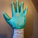 جنس کف این دستکش از لاتکس می باشد و جنس رویه از پلی استر است.