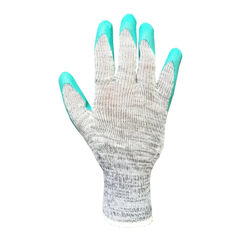 روکش کف دستکش و سر انگشت از جنس لاتکس طبیعی و تازه می باشد و رنگ روکش فیروزه ای ظاهر زیبایی به دستکش ها داده است.